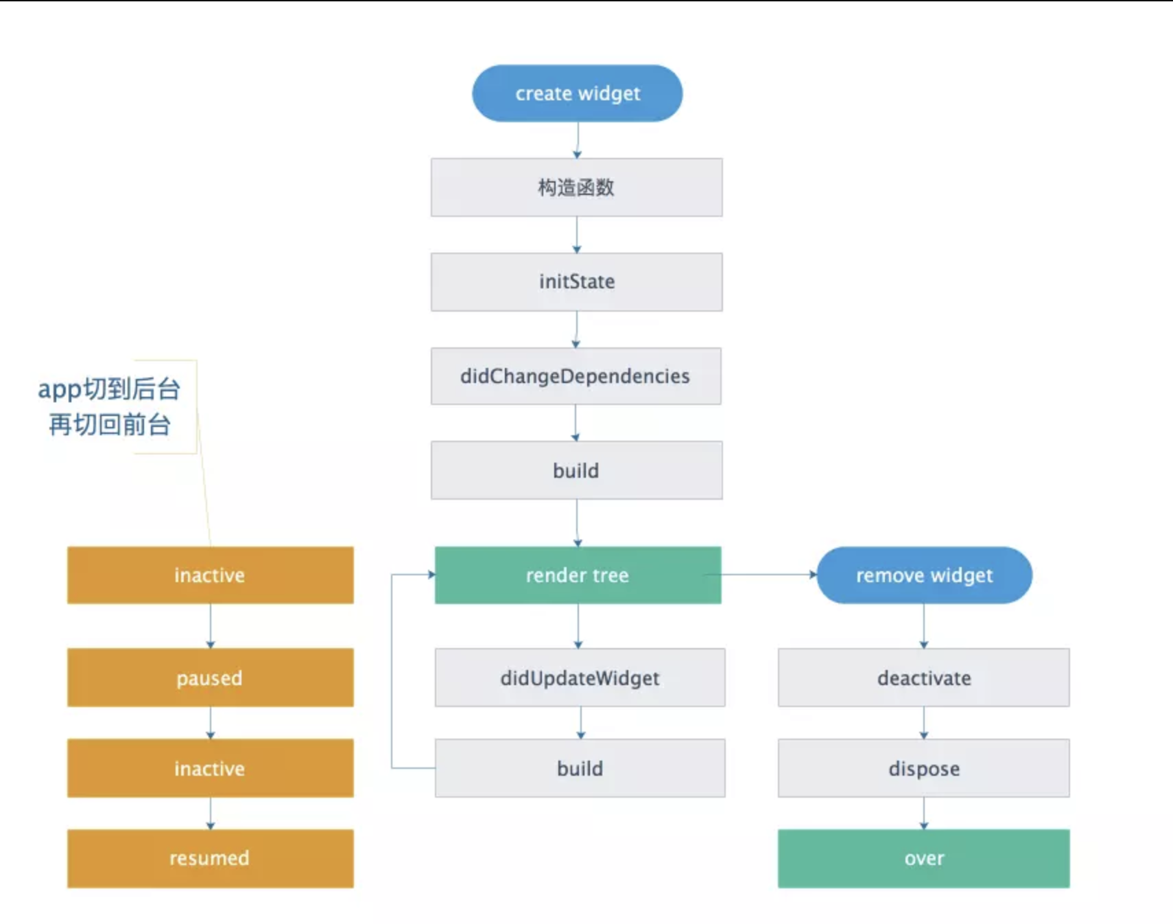 和react组件相似,flutter的组件也有生命周期函数,在组件的不同时期可以做相关的事情。不过除了组件的生命周期函数,flutter还有页面的生命周期函数。